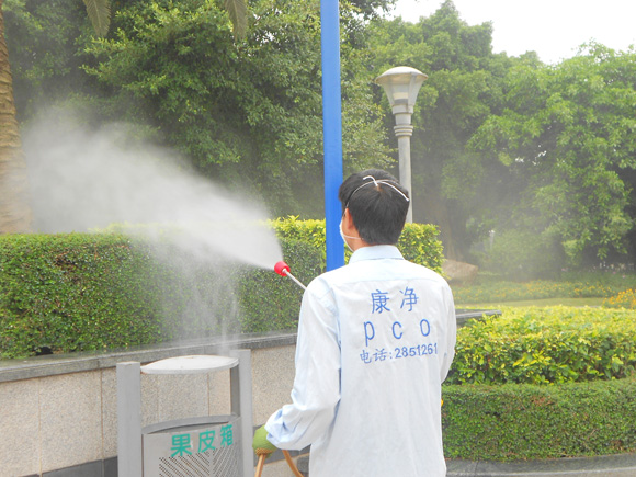 為做好2012年南寧兩會(huì)一節(jié)前、中、后部分重點(diǎn)公共場(chǎng)所保障性消殺工作,2012年09月18日至30日在南寧市愛衛(wèi)辦的組織下,康凈公司四個(gè)組分別對(duì)“南湖南廣場(chǎng)、朝陽(yáng)廣場(chǎng)、金湖廣場(chǎng)、民歌湖廣場(chǎng)”進(jìn)行加強(qiáng)“四害”消殺工作,圖為康凈公司技術(shù)人員在現(xiàn)場(chǎng)進(jìn)行施工。